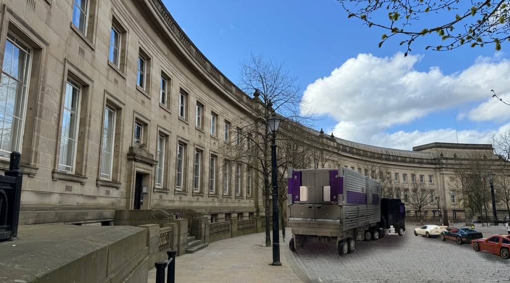 The group of service vehicles continued up Manchester Road, reaching the junction that would take them up over Orlando Bridge, over the railway line and towards Thynne Street. Turning right at the roundabout the vehicles seemed to have purpose and kept a formation of authority, yet still did not activate the lights nor sounds of their sirens. At the traffic lights they turned left past the Sweet Green Tavern public house. A mural on the wall recollecting the site of a train accident, recognising and remembering how this route, now a major road junction in the town, had once been more significantly a rail-track for the local coal-mines and interconnected with the canals. Such was the history of the town, with a roaring development during the 1800s as the Industrial Revolution brought the textile industry and cotton mills into the town. Many had now closed, though some buildings remained and the occasional high chimney could still be seen dotted on the landscape. The vehicles passed on through, ignorant of this history as they could only see the large car parks and shopping centres that had replaced such industry. Although, they were headed to one of the few remaining visible landmarks in the town, a prominent evidence of the heady days of that 1800s development with the grand town hall and its high clock tower right in the centre of town.