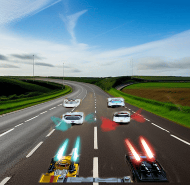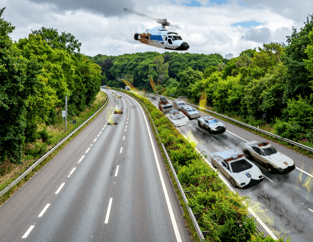 Approaching the bend where the M61 connected to the M60, there was a queue of cars starting to build on the bridge that was the on-ramp and connection between the two. The group of vehicles, with the two black sports cars in front, headed to that bridge at full speed. They clearly had no intention to slow and drivers on the bridge looked in their rearview mirrors in horror to see the cars hurtling towards them. Typically, the sports cars would have crumpled on impact to any of the more sturdier designed vehicles they hit. However, the sleek angular form acted like a shovel and each of the slow moving cars was ploughed like snow and thrown over the side of the bridge. Once that section had completed, the cars progressed onto the main motorway. Some drivers, seeing what had happened in their rearview mirrors, tried to rapidly move to the sides using the hard shoulder on the left and the central barrier on the right. It wasn’t enough space though and the cars continued to be ploughed but this time being overturned to collide with or land on top of the neighbouring vehicles. With each hit it was notable that the sports cars did not suffer any damage. If anyone had looked closely, they would have seen a small window of air between each contact of sports car to vehicle. The violent protractors having the ability to generate an electromagnetic field that was used as a shield, a cushion to protect their shells.