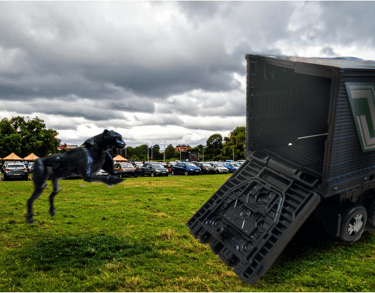 The humans had also managed to estimate the destination of the vehicles and tried in vain to block their progress to the zoo. On approach, the black truck took the lead and smashed through the gates of the zoo’s car park, pulled onto the grass area near the parking zone and opened its rear section of the zoo.