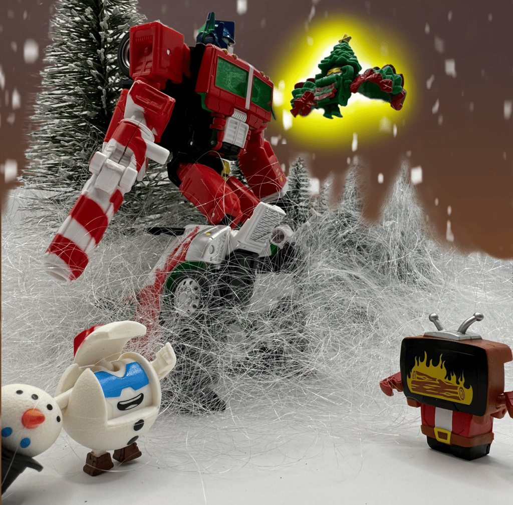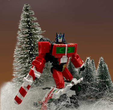 “I found you, Prime, badly damaged by the side of the road. I do not know what had happened, but you were in a serious state. I am no medic and I thought I wasn’t able to help you. But then I used my ability to give Christmas gifts and was able to repair your damage, with the spirit of Christmas!”