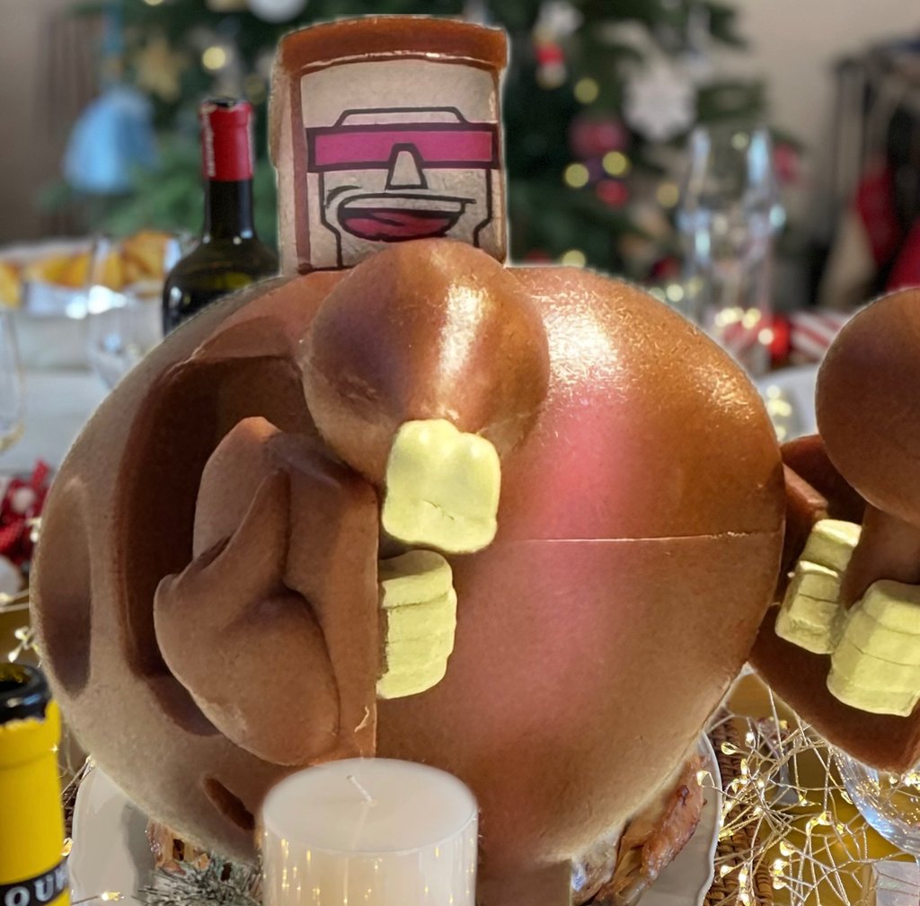 No, Cold Turkey wasn’t cold, having just exited an oven at 200 degrees Celsius (fan) / 400 degrees Fahrenheit. Though why he’d been born inside an oven he could not comprehend. Only later would he learn that it was due to an Energon pulse being sent around the planet Earth set off from a piece of the Transformer race’s Creation Matrix* being launched into the Earth’s atmosphere. (Meaning that he would survive this experience -of course he will- to learn that information). With his birth, his computer brain was being connected to a cloud of information. Image after image was being poured into microprocessors as he aimed to get a basic understanding of his surroundings. He cross-checked his geographic location with images he could find resembling his form. Plus, looking to the colours and ornaments that surrounded him for clues. ‘Thanksgiving’ he queried. No, the geolocation and decorations didn’t align. He looked to the green pointed plant-based object near the end of the wooden table he was on, decorated with metallic balls and other shiny items.