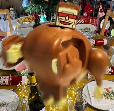 Settling down for the Christmas Turkey dinner, when the turkey gets cold feet and leaps off the table.
