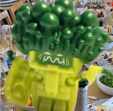 Back at the table, a piece of broccoli leapt out of the bowl, growing in size and reshaping its form so that arms, legs and something of a head appeared. It too jumped off the table to chase after the turkey. “Wait for me!” cried Brock O’Lonely.