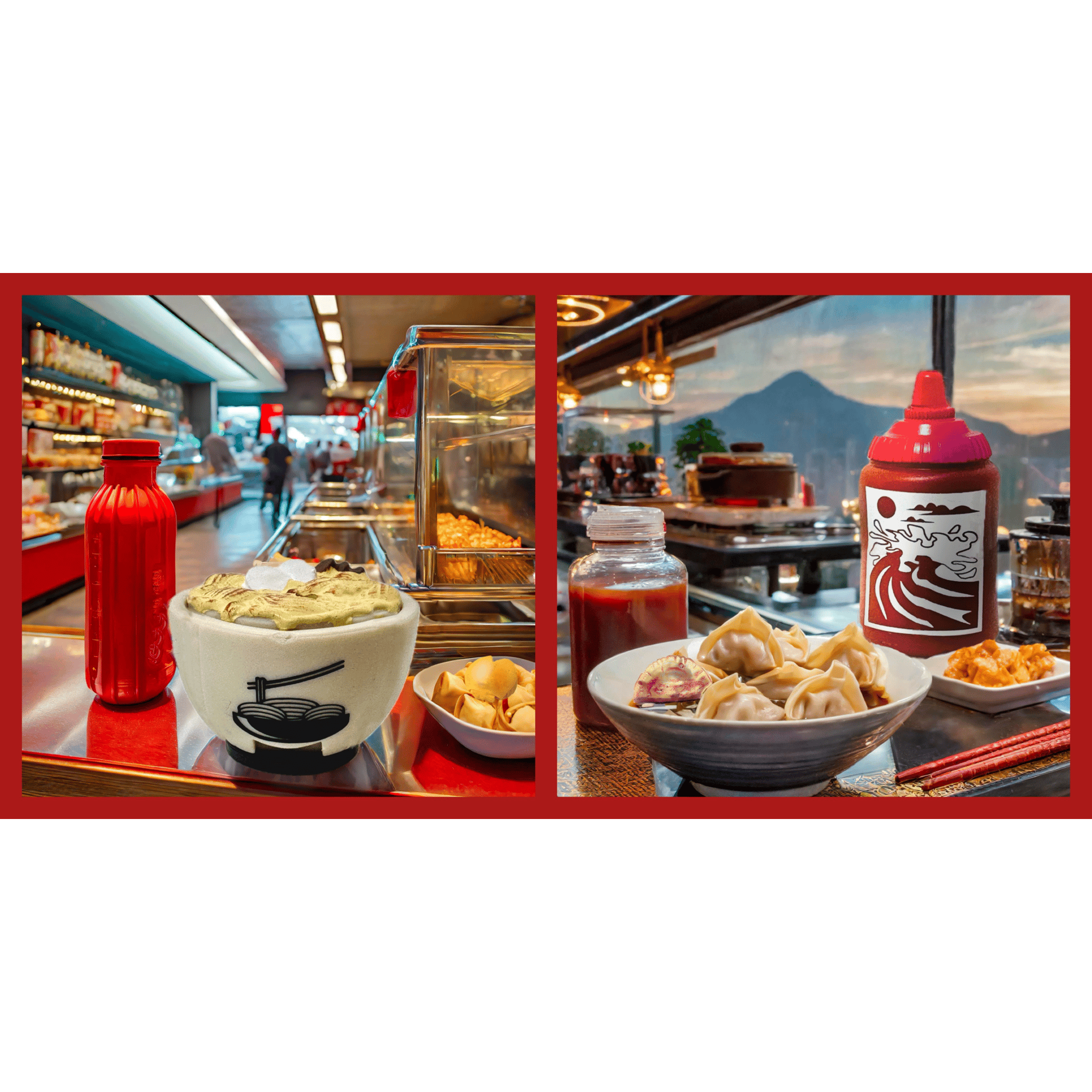 He looked around the food court at the various options. Knowing he would have days of the traditional festival food, some Tang Yuan rice balls, some Jiaozi dumplings, he decided to have something different and opted for the food area with Japanese style cuisine. On the counter were various articles to show the food options. There were some noodle dishes- ramen as the Japanese called them, but in China they preferred to call them lamian. The bowls looked as if they could be eaten but in fact all the food displays were fake, as is typical in Japan’s restaurants. He noticed a bowl of steam dumplings and one that seemed golden coloured. He’d heard of a special competition for the festival to find golden dumplings in food, similar to a story he’d heard from the west about chocolate bars. Jun Bao found it amusing.